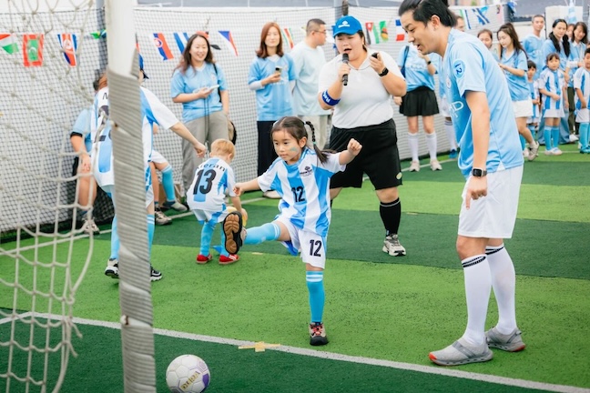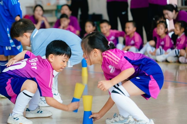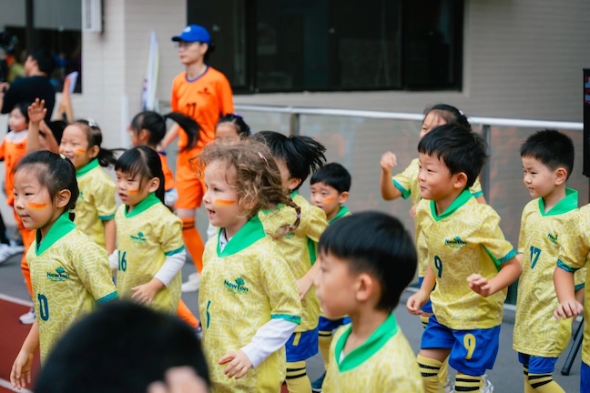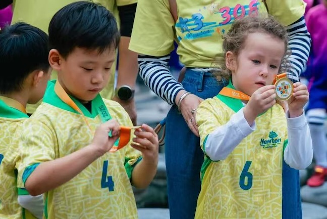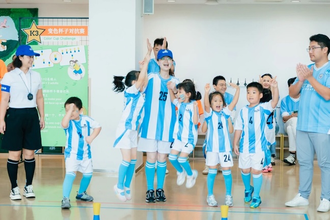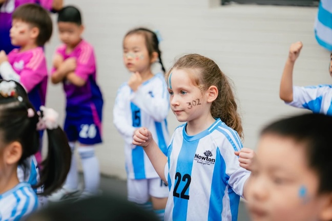 The Football class is a distinctive feature for K3 at Newton, with all K3 children being members of the school football teams. At the end of each academic year, the K2 children receive the team flag from their K3 seniors, symbolizing tradition and growth. On the day of the K3 Sports Day, the K3 children donned their team uniforms – they were the mysterious Fox Team, the agile Cheetah Team, the mighty Tiger Team, the brave Lion Team, the nimble Dolphin Team, the energetic Kangaroo Team, and the confident Eagle Team.