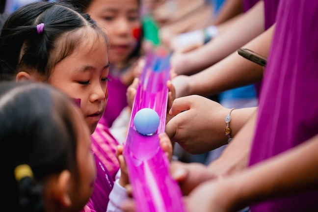 In the "Color Cup Challenge," children exercised their observation, reaction, and avoidance skills.