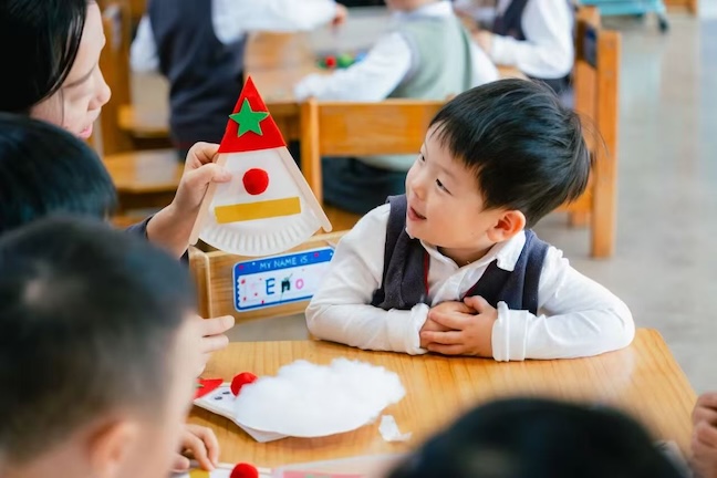 Each year, we specially prepare real Christmas trees for the children. As the vibrant green trees are brought into the campus, children can touch the pine needles, smell the fresh scent of the trees, and experience the true essence of "Christmas" through intimate contact with nature. Their imaginations of Christmas are no longer just pictures in storybooks but a real, warm experience unfolding right before their eyes.