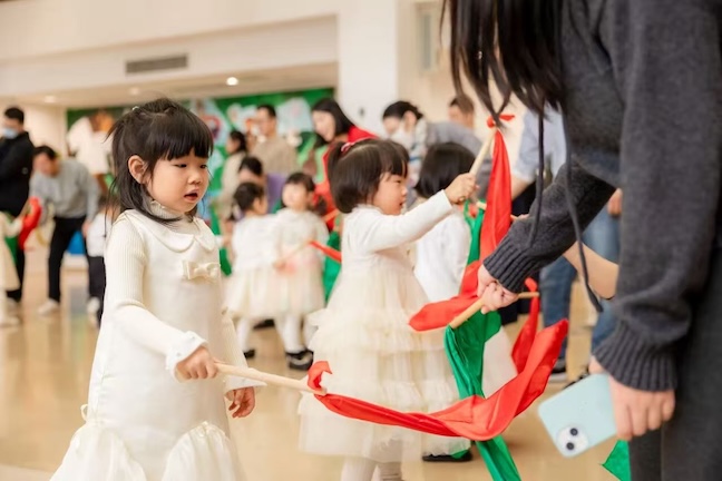In musical rhythms, parents and children became musical playmates, dancing together; in the photo booth, Santa Claus guarded the children's fairytale dreams, and family photos became a warm holiday keepsake.