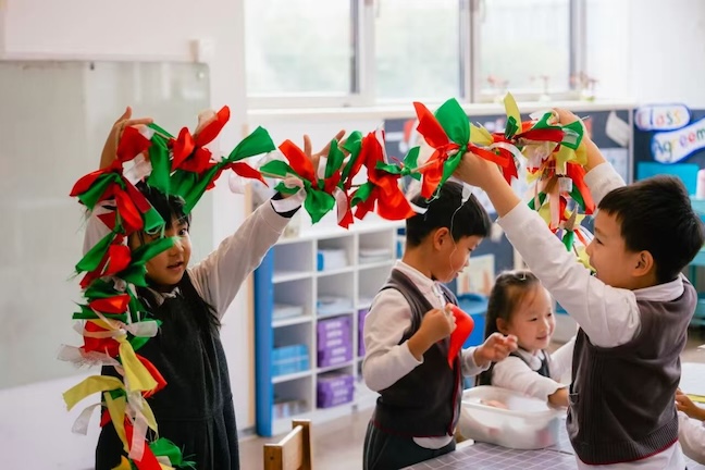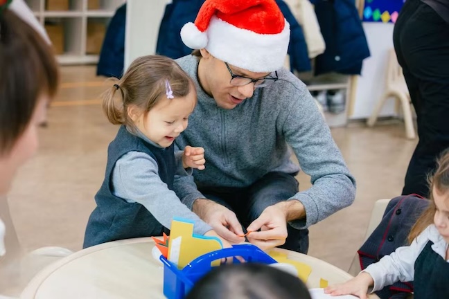 We invited Pre-K parents into the classrooms to decorate Newton's first Christmas season with their children. Under the teachers' guidance, parents and children personally adorned walls, hung ornaments, and together lit up their festive corners. K2 and K3 children also got hands-on, cutting and pasting to create unique Santa Clauses and creative decorations, spreading a fairytale festive atmosphere throughout every classroom.