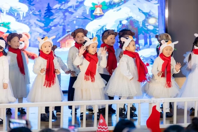 From Pre-K to K3, every child had their own Christmas script. They transformed into little performers, confidently singing and dancing gracefully on stage, celebrating the holiday in an innocent way.