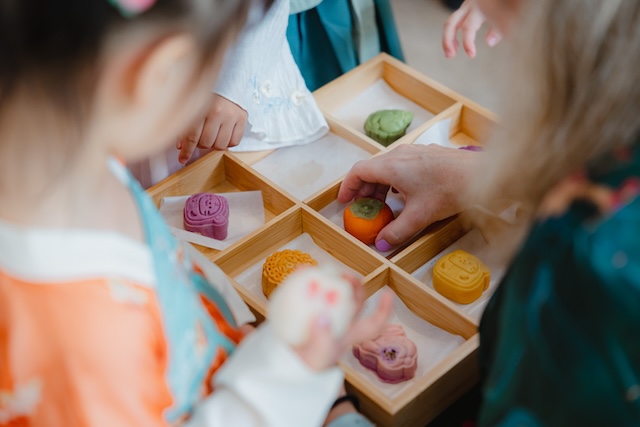 Festivals come alive through storytelling and through the stories of Mid-Autumn Festival and the moon children learned the origin of the Mid-Autumn celebrations, the ancient rituals of sacrificing to the moon, worshipping the moon, appreciating lanterns and eating mooncakes, along with the scientific understanding of the moons changing phases.